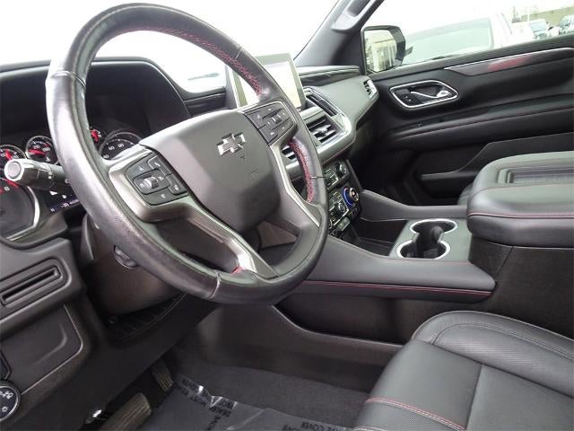 Odometer is 36062 miles below market average! (Camargo Cadillac) is proud to present you with another True Market Priced Pre-Owned Vehicle. This 2021 Chevrolet Tahoe RST is loaded with the following Factory Options:Driver Alert Package (Front & Rear Park Assist, Lane Change Alert w/Side Blind Zone Alert, Lane Keep Assist w/Lane Departure Warning, and Rear Cross Traffic Alert), Luxury Package (2nd Row Pwr Release 60/40 Split-Folding Bench Seat, 3rd Row 60/40 Power-Folding Split-Bench Seat, Automatic Heated Steering Wheel, HD Surround Vision, Heated 2nd Row Outboard Seats, Memory Settings, Outside Heated Power-Adjustable Mirrors, Power Tilt & Telescopic Steering Column, and Rear Pedestrian Alert), Preferred Equipment Group 1SP (1st & 2nd Row Color-Keyed Carpeted Floor Mats, 2 USB Data Ports, Auto-Dimming Inside Rear-View Mirror, Bright Front & Rear Door Sill Plates, Color-Keyed Carpeting Floor Covering, Driver & Front Outboard Passenger Airbags, Floor Console w/Storage Area, Hands-Free Rear Power Programmable Liftgate, HD Radio, Infotainment Display, Leather-Wrapped Steering Wheel, LED Daytime Running Lamps, Memory Settings for Driver, Remote Start, SiriusXM Radio w/360L, and Universal Home Remote), Rear Media & Nav Package (Radio: Chevrolet Infotainment 3 Premium System, Rear Seat Media System, and SiriusXM NavTraffic), 4WD, Jet Black/Victory Red Leather, 10-Way Power Driver & Passenger Seat Adjusters, 3.23 Rear Axle Ratio, 3rd row seats: split-bench, 4-Wheel Disc Brakes, 9 Speakers, ABS brakes, Air Conditioning, Alloy wheels, AM/FM radio: SiriusXM with 360L, Apple CarPlay/Android Auto, Auto High-beam Headlights, Auto-dimming Rear-View mirror, Automatic temperature control, Bose 9-Speaker Stereo Audio System Feature, Brake assist, Bumpers: body-color, Compass, Delay-off headlights, Driver door bin, Driver vanity mirror, Dual front impact airbags, Dual front side impact airbags, Dual-Pane Power Panoramic Sunroof, Electronic Stability Control, Emergency communication system: OnStar and Chevrolet connected services capable, Four wheel independent suspension, Front anti-roll bar, Front Bucket Seats, Front Center Armrest, Front dual zone A/C, Front High-Back Reclining Bucket Seats, Front reading lights, Fully automatic headlights, Garage door transmitter, Heated door mirrors, Heated Driver & Front Passenger Seats, Heated front seats, Illuminated entry, Illuminated Mirror Chevrolet Emblem (LPO), Leather steering wheel, Low tire pressure warning, Memory seat, Occupant sensing airbag, Outside temperature display, Overhead airbag, Overhead console, Panic alarm, Passenger door bin, Passenger vanity mirror, Perforated Leather Seat Trim, Power door mirrors, Power driver seat, Power Liftgate, Power passenger seat, Power Release 2nd Row Bucket Seats, Power steering, Power windows, Premium audio system: Chevrolet Infotainment 3, Premium Smooth Ride Suspension, Radio: Chevrolet Infotainment 3 Plus System, Rain sensing wipers, Rear air conditioning, Rear anti-roll bar, Rear reading lights, Rear seat center armrest, Rear window defroster, Rear window wiper, Remote keyless entry, Roof rack: rails only, Security system, Set of 4 Wheel Locks (LPO), Speed control, Speed-sensing steering, Split folding rear seat, Spoiler, Steering wheel mounted audio controls, Tachometer, Telescoping steering wheel, Tilt steering wheel, Traction control, Trip computer, Variably intermittent wipers, Voltmeter, and Wheels: 22" x 9" Bright Machined.