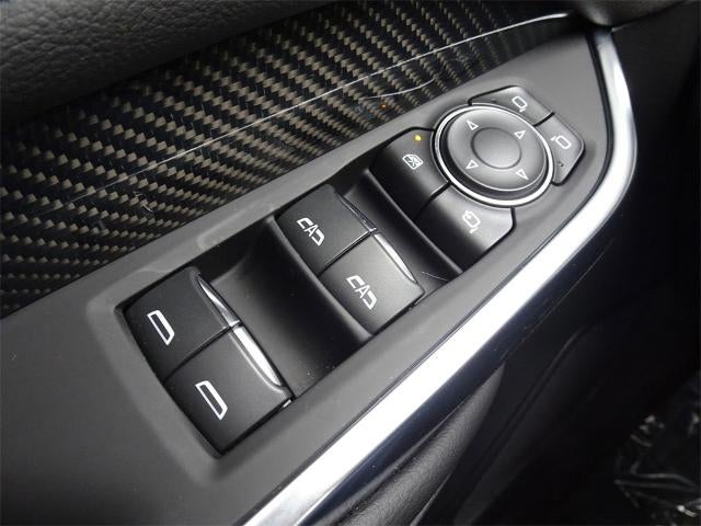 - Opens or closes when the system senses the key fob and the driver extends their foot under the left-hand side of the rear bumper over an image of the Cadillac Crest projected under the vehicle